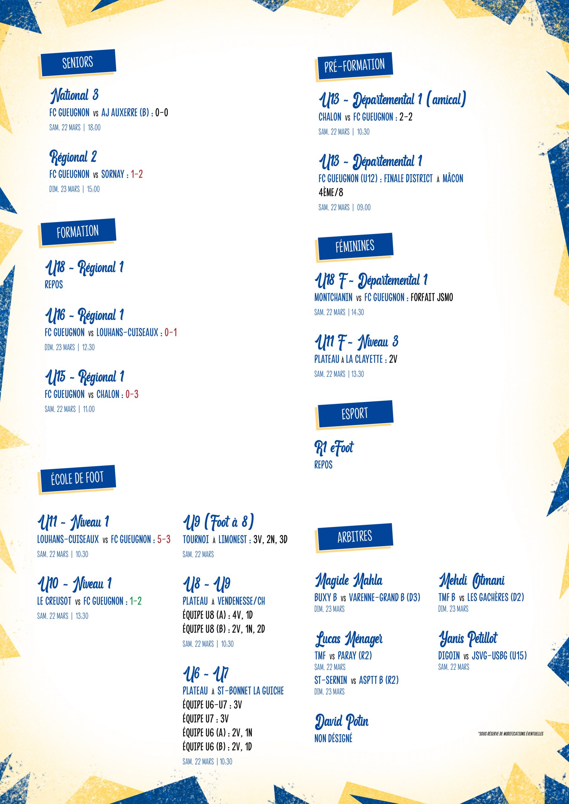 [Agenda] Les résultats du week-end du 22 et 23 mars 2025