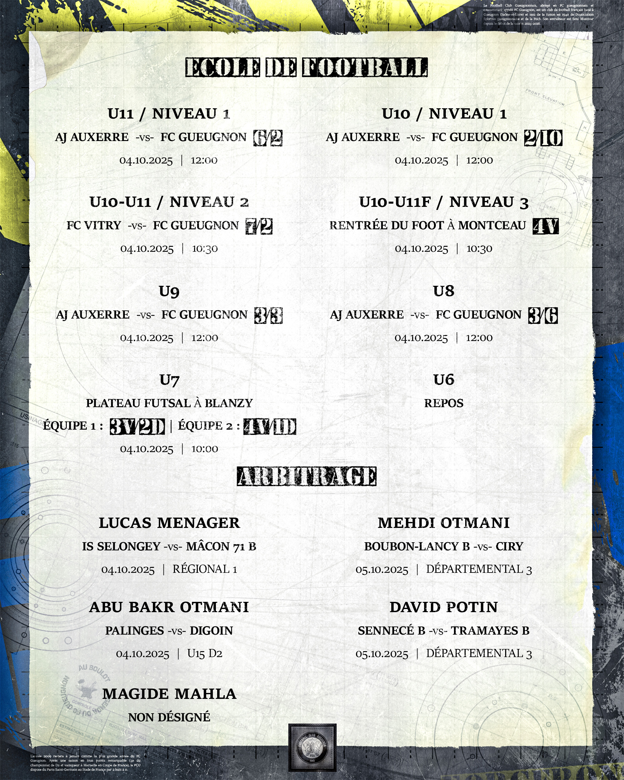[Agenda] Résultats du weekend du 04 et 05 Octobre 2025