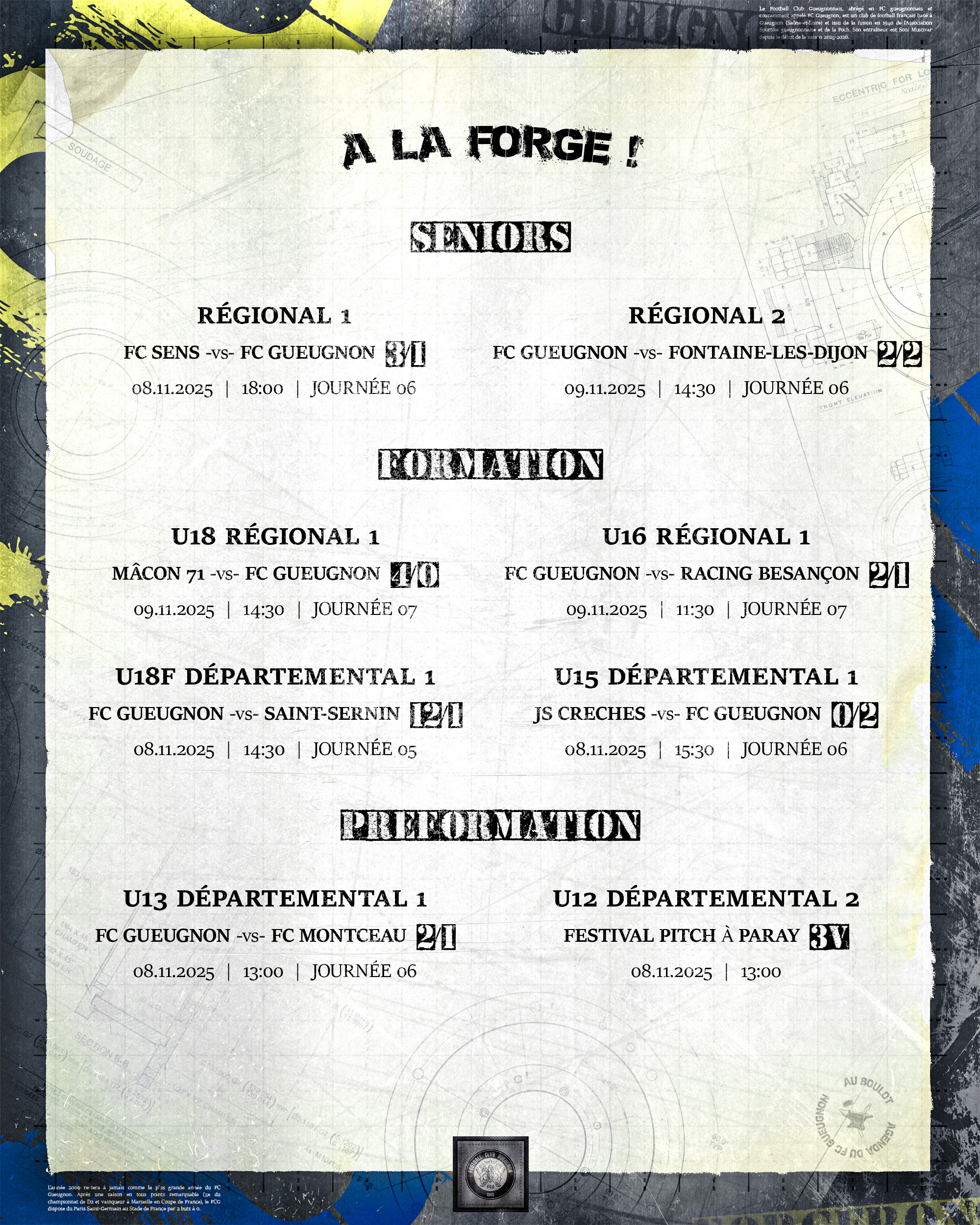 [Agenda] Résultats du weekend du 08 et 09 Novembre 2025