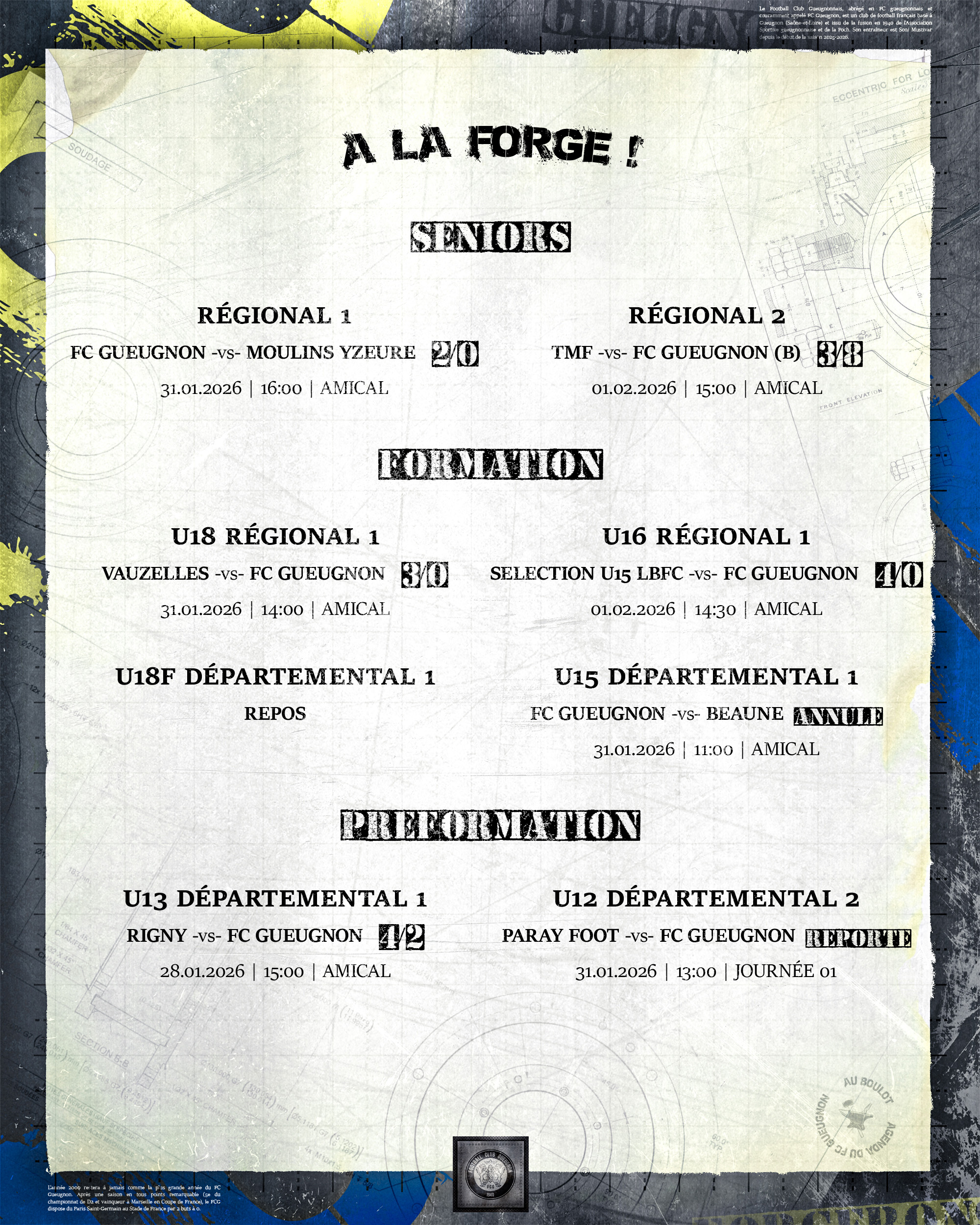 [Agenda] Résultats du weekend du 31 Janvier et 1er Février 2026 2 février 2026 Catégories News, News 2025/2026 #ForgeronFamily PLUS D'ACTUALITÉS... 2 février 2026[Agenda] Résultats du weekend du 31 Janvier et 1er Février 2026Lire 28 janvier 2026[Agenda] Weekend du 31 Janvier et 1er Février 2026Lire 27 janvier 2026[Forgeron APERAM] Découvrez le Forgeron du mois de Décembre 2025Lire 26 janvier 2026[Agenda] Résultats du weekend du 24 et 25 Janvier 2026LireA LA UNE 1