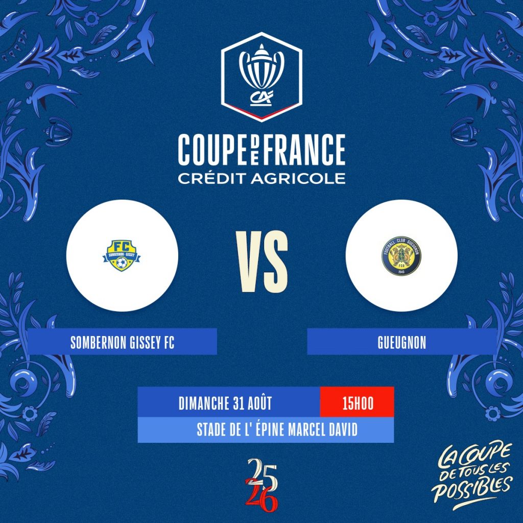 Rendez-vous ce dimanche 31 Août à 15h00 pour un match de coupe à ne pas manquer !