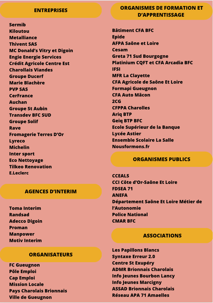 Découvrez l’ensemble des structures présentes à notre Forum de l’Orientation, de l’Emploi, des Métiers et de l’Apprentissage ! Rendez-vous ce vendredi 06 Octobre à partir de 08h30 au stade Jean Laville !