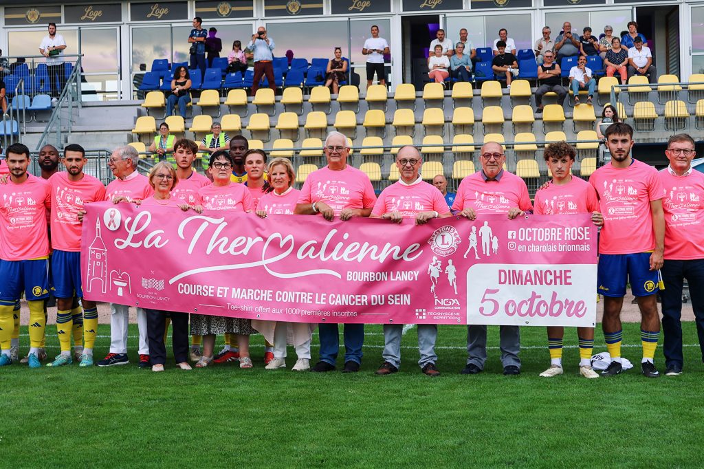 À l’occasion d’Octobre Rose, deux grands événements sportifs et solidaires se sont rapprochés : La Gueugnonnaise, représentée par Lindsay Teixeira, et La Thermalienne, portée par Patrice Reverdy. Tous deux étaient présents lors de la rencontre FC Gueugnon / AJ Auxerre C, où ils ont donné le coup d’envoi fictif afin de mettre en lumière la cause qu’ils défendent.