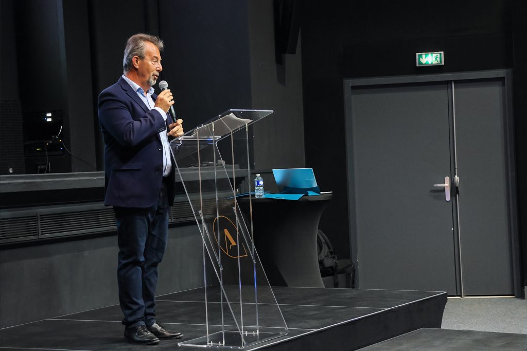 La soirée a débuté avec l’intervention de Guillaume Thévenet, qui a présenté les différents métiers de l’Agora Espace : organisation d’événements, solutions LED, production média et TV. Le président Bernard Canard a ensuite salué la fidélité et le soutien des partenaires et abonnés, indispensables à la réussite du club.