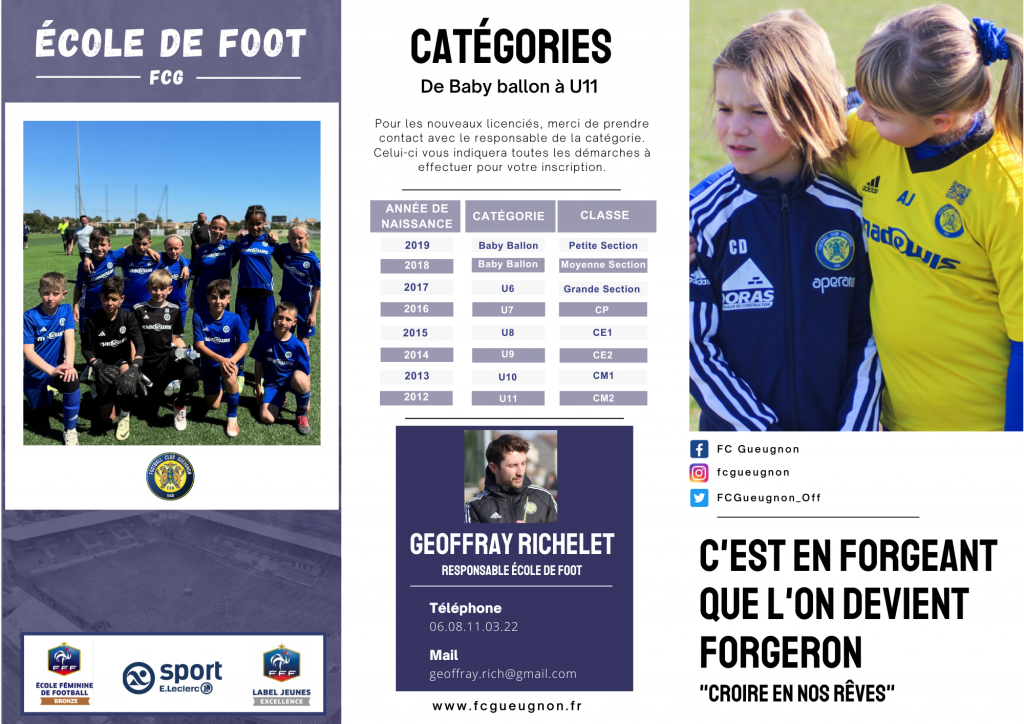 Pour obtenir davantage d’informations ou inscrire votre enfant dans une autre catégorie, n’hésitez pas à contacter le Responsable de l’École de Football du FC Gueugnon : Geoffray RICHELET au 06.08.11.03.22.