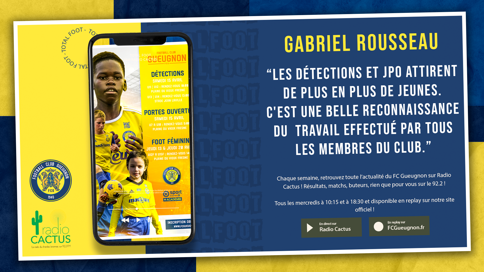 [Total Foot – Radio Cactus] Gabriel Rousseau : « Les détections et JPO attirent de plus en plus de jeunes. C’est une belle reconnaissance du travail effectué par tous les membres du club. »