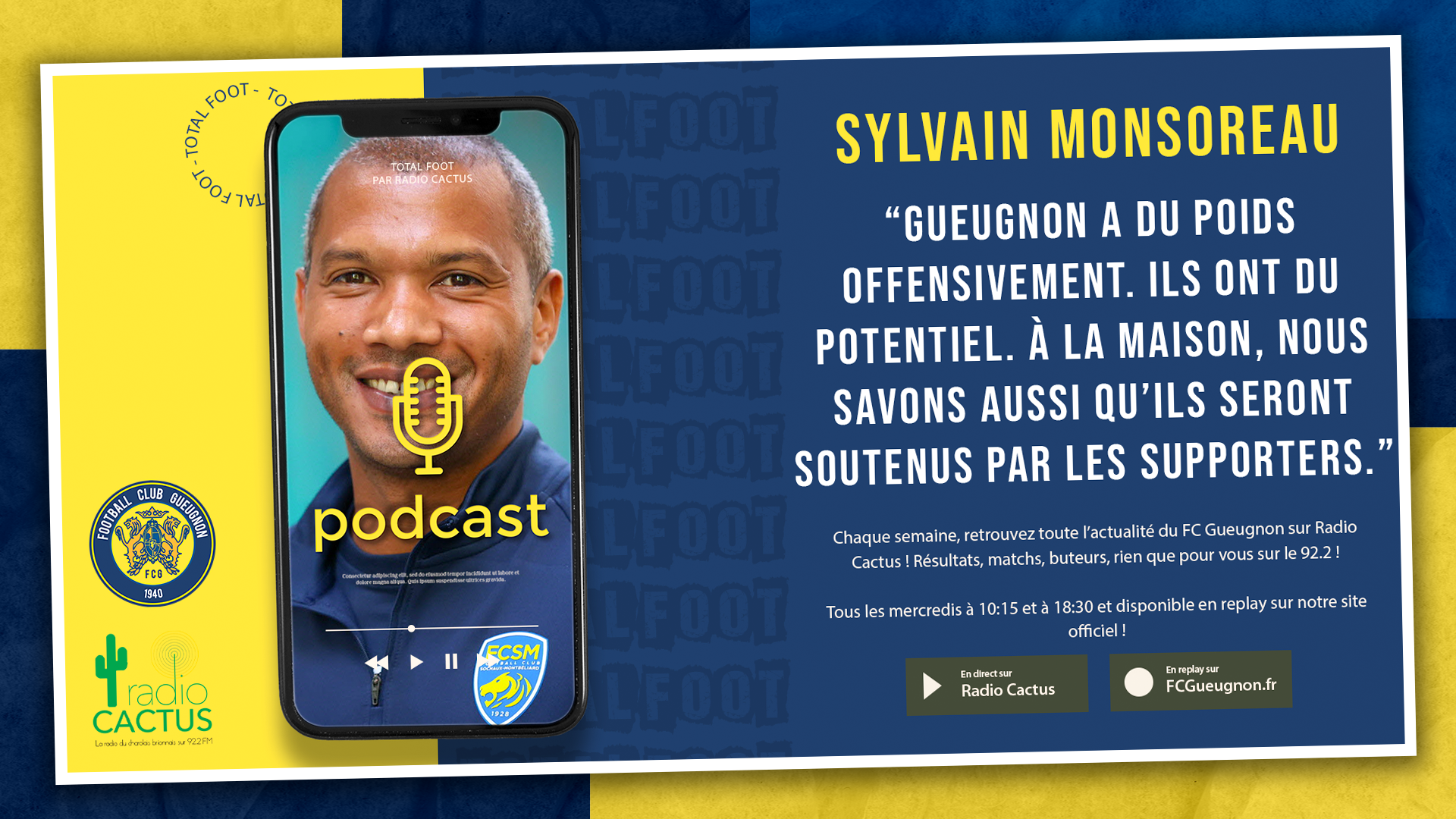 [Total Foot – Radio Cactus] Sylvain Monsoreau : « Gueugnon a du poids offensivement. Ils ont du potentiel. À la maison, nous savons aussi qu’ils seront soutenus par les supporters. »