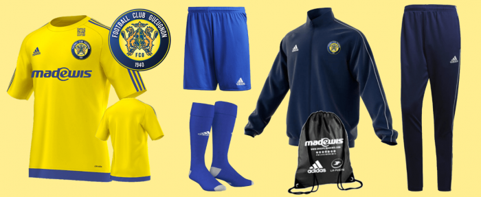 Dans le prix est inclus : la licence ; les équipements ADIDAS suivants : un short, une paire de chaussettes, un maillot d’entraînement, un survêtement complet et un sac à chaussures ; et 3 calendriers.