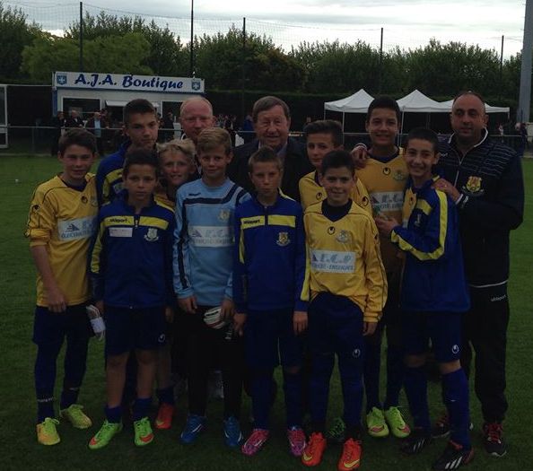 Une belle photo du groupe gueugnonnais en compagnie de Guy Roux !