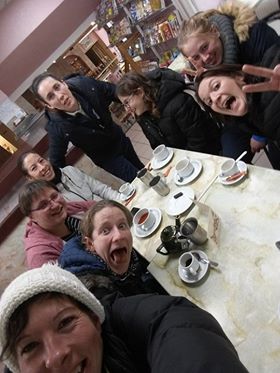 Malgré une défaite à Charmoy, la bonne humeur reste de mise chez les filles comme le montre cette photo lors d’une pause café en rentrant sur Gueugnon.