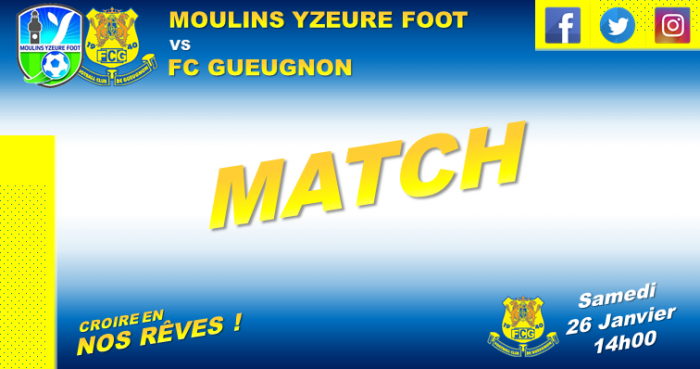 Les forgerons affronteront donc les joueurs du Moulins Yzeure Foot (MYF), qui évoluent en National 2. Le coup d’envoi de la rencontre sera donné à 14h00, au stade de Champ Daillant à Yzeure (terrain synthétique).