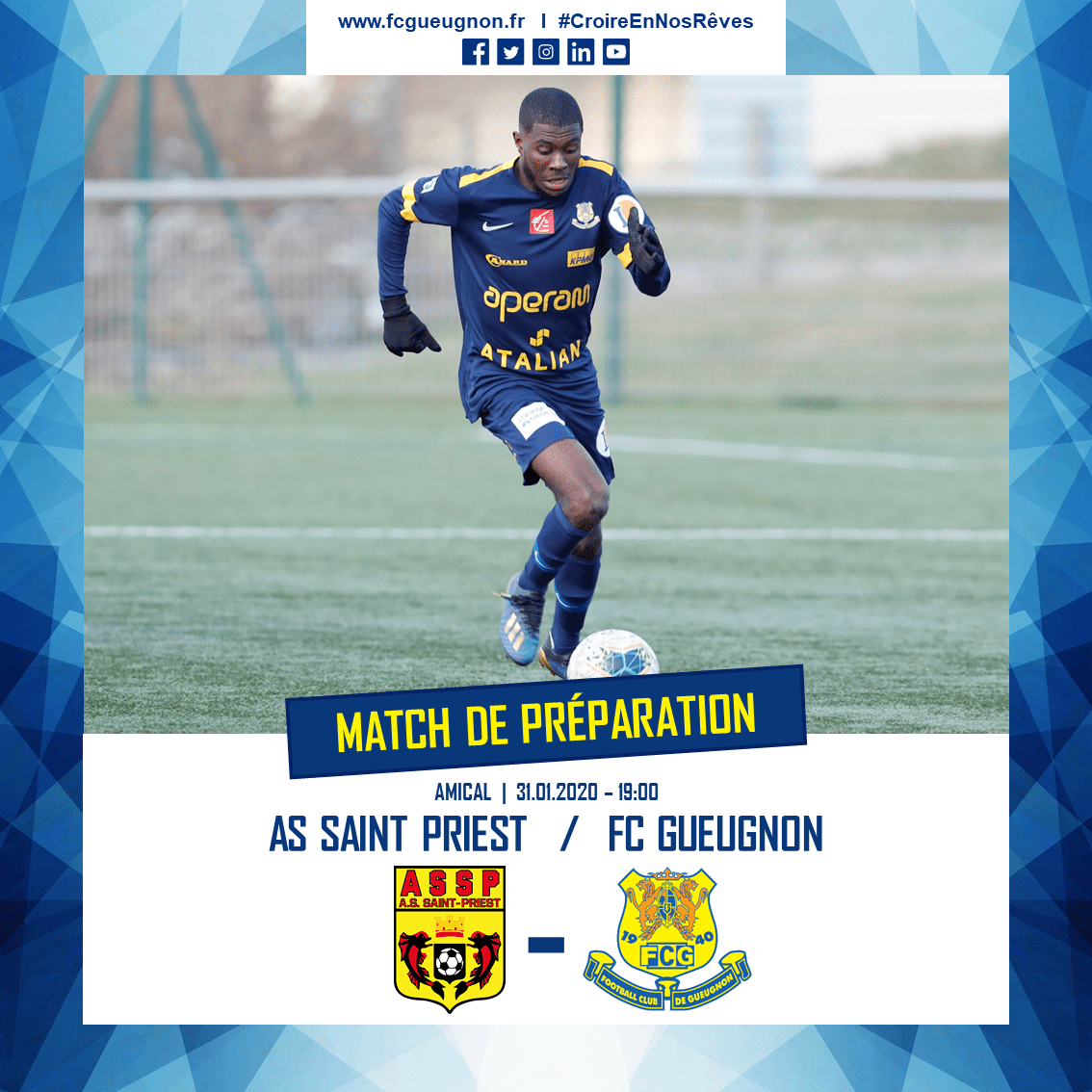 Avant d’affronter le FC Morteau-Montlebon le samedi 08 Février à Jean Laville, les Jaunes & Bleus vont défier l’AS Saint Priest dans le cadre d’une rencontre de préparation.
