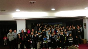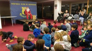 Les dirigeants du FCGueugnon avaient donné rendez-vous aux enfants de l’école de foot ainsi qu’à leurs parents pour le traditionnel arbre de Noël du FCG. Pas moins de 70 enfants des catégories U6 à U13 étaient présents et ont pu recevoir une gourde aux couleurs du FCG par le Père Noël lui-même !