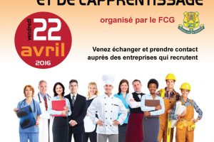 Le Vendredi 22 Avril 2016, de 13h30 à 17h00, le FCG organise le Forum de l’Emploi et de l’Apprentissage au salon de Bourgogne du stade Jean Laville. Venez échanger et prendre contact auprès des entreprises qui recrutent !