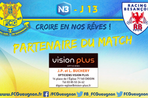 Ce samedi 06 janvier 2018, ce sont les opticiens « Vision Plus » situés à Digoin qui ont choisi d’apporter leur soutien au FC Gueugnon en offrant le Ballon du Match. Nathan Mairet, accompagné de son père Jean-Paul, donnera le coup d’envoi de la rencontre face au Racing Besançon. Vision Plus, c’est une célèbre enseigne d’optique …