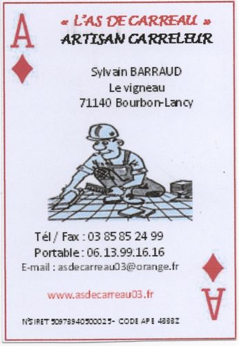 Notre ami Sylvain est chef d’entreprise de la société « l’AS de CARREAU« . Joli jeu de mots pour honorer sa profession de carreleur et surtout son talent que bon nombre de gens ont pu tester et constater compte dans les travaux qu’il a réalisé.