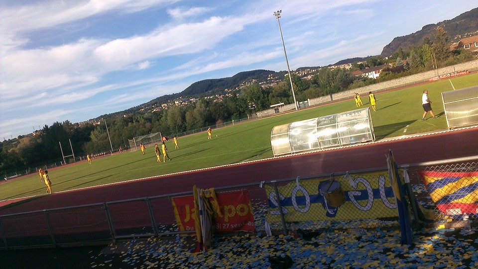 Entrée des joueurs sous les chants et confettis des Ultras Gueugnon. (via Football Club de Gueugnon – FCGueugnon)