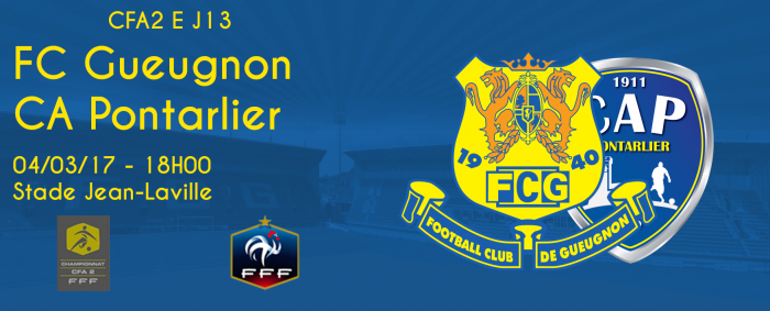 Reportée à deux reprises, la rencontre face au CA Pontarlier comptant pour la 13ème journée de CFA 2 se jouera ce samedi 4 mars 2017 à 18h. Les forgerons tenteront à cette occasion de poursuivre leur série en cours de cinq matchs sans défaite.