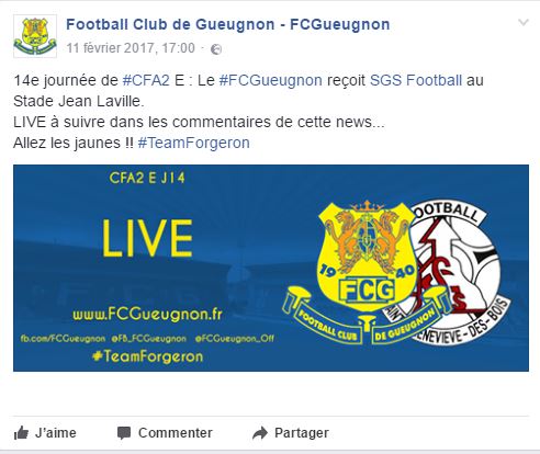 >> Live CFA2 J14 – FC Gueugnon v/s Sainte Geneviève : http://bit.ly/CFA2J14SteGenevieve1617