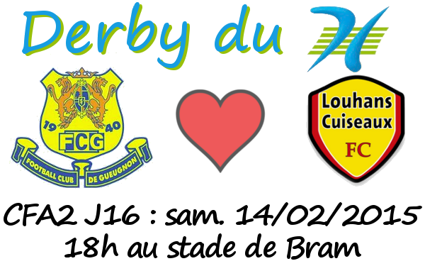 Supporters Forgerons, rendez-vous ce samedi 14 février à 18h au stade de Bram pour un derby plein d’amour entre les forgerons de Gueugnon et les bressans de Louhans-Cuiseaux !