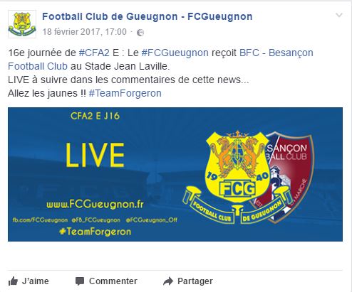 N’hésitez pas à réagir vous aussi sur la publication suivante et sur les réseaux sociaux en utilisant les hashtags #FCGueugnon et #TeamForgeron.