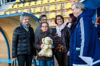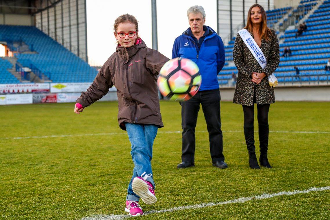 Du monde sur la pelouse de Jean Laville ! Pour la réception du Besançon FC ce samedi 18/02/2017 à 18h00, c’est le Bar/Brasserie de Nadine et Pascal situé aux Gautherets à Saint-Vallier qui a offert le ballon du match. Ils étaient accompagnés par l’association « Les BOUTS D’ CHOUX » du Centre Hospitalier de Paray le Monial ainsi que par Naomi BAILLY, Miss Bourgogne 2016