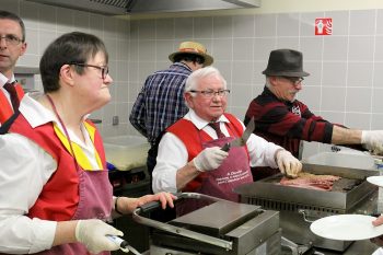 Une dégustation de viande d’agneau était tout d’abord proposée à la mi-temps du match puis 170 personnes ont pu ensuite déguster le repas concocté par la Confrérie des Saveurs du Pays Charolais. Chaque convive devait alors, assiette en main, passer par les cuisines où les membres de la confrérie procédaient eux-mêmes à la cuisson de la viande de bœuf au goût de chacun.