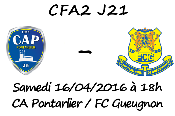 Le CA PONTARLIER avait pris la 4ème place du championnat la saison passée et était citée cette saison parmi les équipes favorites. L’entraîneur Jean Luc Courtet confiait vouloir « réussir l’objectif du maintien le plus rapidement possible pour pouvoir regarder ensuite en haut du tableau » et affirmait que « les matchs à venir vont décider de notre avenir et de nos ambitions ». C’est à dire réussir la montée ! Le CA Pontarlier est actuellement 3ème avec 55 points et vient de concéder le nul à Thiers, la lanterne rouge. Pontarlier est la 2ème équipe au classement des matchs à domicile avec 7 victoires et 3 nuls. En attaque, Pontarlier se situe au niveau du FCG avec 24 buts inscrits contre 23 pour le FCG. Pontarlier aura certainement aussi à cœur d’effacer sa déconvenue du match aller où les forgerons l’avaient emporté par 4 buts à 0.