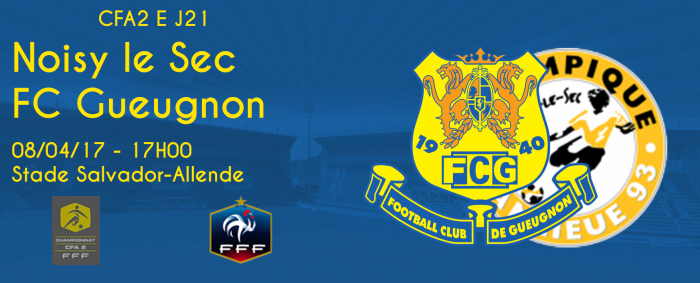 Le FC GUEUGNON a offert à ses supporters sa première victoire à domicile en 2017 face à Ornans (2-1). Une victoire acquise dans les dernières minutes qui a ravi les 600 personnes présentes ce soir là dans les travées du stade Jean Laville. Les forgerons pointent désormais à la 5ème place du classement, objectif fixé par le Président. Il reste maintenant bien sûr à le pérenniser jusqu’à la fin de saison. Pour cela, le FCG pourra compter sur son état de forme, notamment hors de ses bases puisque qu’il pointe en effet à la 2e position au classement à l’extérieur juste derrière le leader du championnat. Pour combler le manque de compétition lors de ces deux dernières semaines, le FCG a joué un match amical le mercredi 29 mars contre l’équipe World Detect Academy (ex Certifoot) en l’emportant sur un score plutôt large. Pour affronter Noisy le Sec, Philippe Correia pourra compter sur Diadié Diarra revenu de sélection Mauritanienne. Par contre, Therry Ouedraogo et Dylan Mamessier, blessés, devront déclarer forfait. Au match aller, les deux équipes s’étaient quittées sur un match nul 2-2.