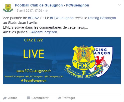 N’hésitez pas à réagir vous aussi sur la publication suivante et sur les réseaux sociaux en utilisant les hashtags #FCGueugnon et #TeamForgeron.