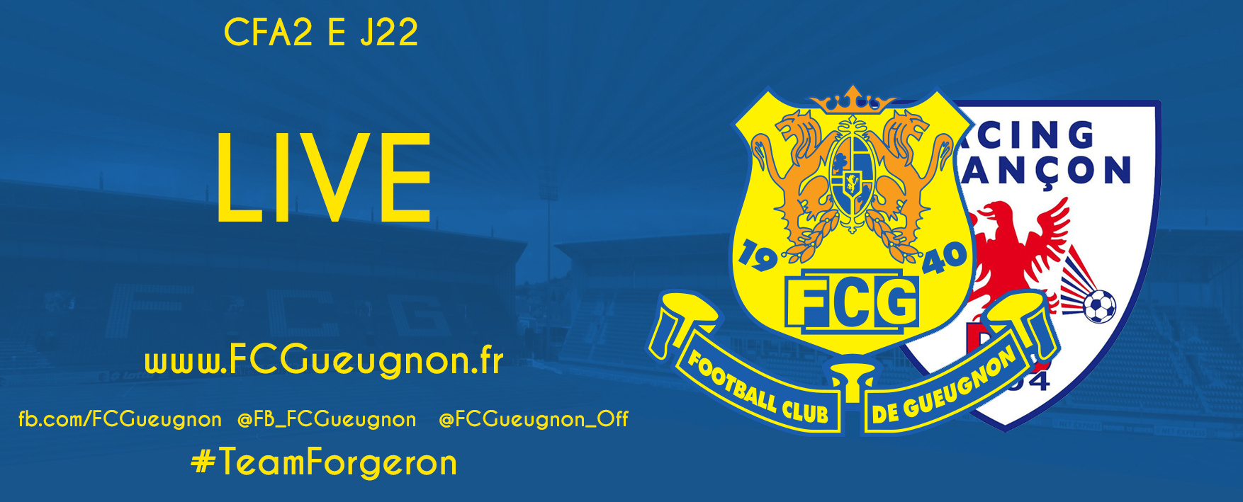 Rendez-vous sur la page Facebook de notre #TeamForgeron pour suivre la 22e journée de CFA2 contre le Racing Besançon.