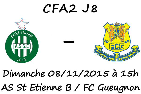 8e journée de CFA2 ce dimanche 08/11 à 15h, les jaunes et bleus se déplacent au centre d’entrainement de l’Etrat pour pour affronter la réserve de l’AS St Etienne, notre club partenaire !
