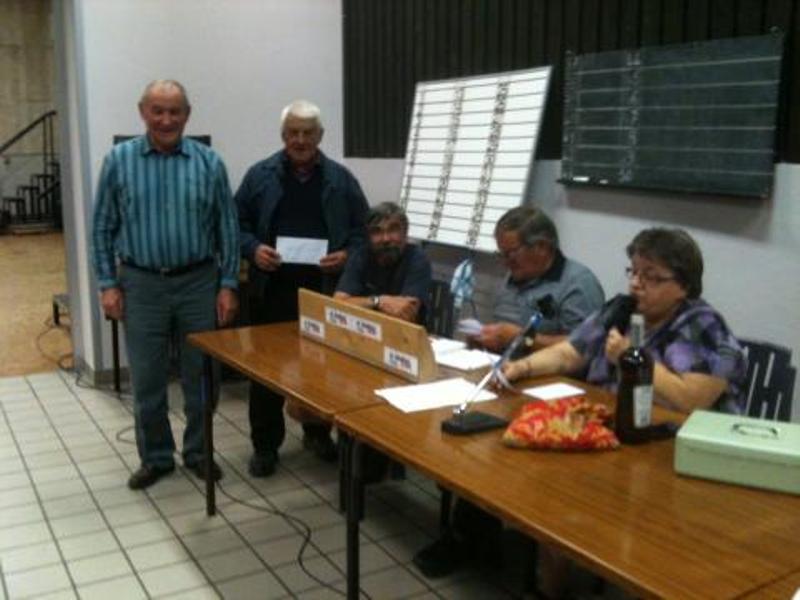 MM. PROST Marcel et FORGEAT Jean Louis tous les deux de la FNACA de Saint Vincent les Bragny remportent le concours de belote avec un total de 4810 points
