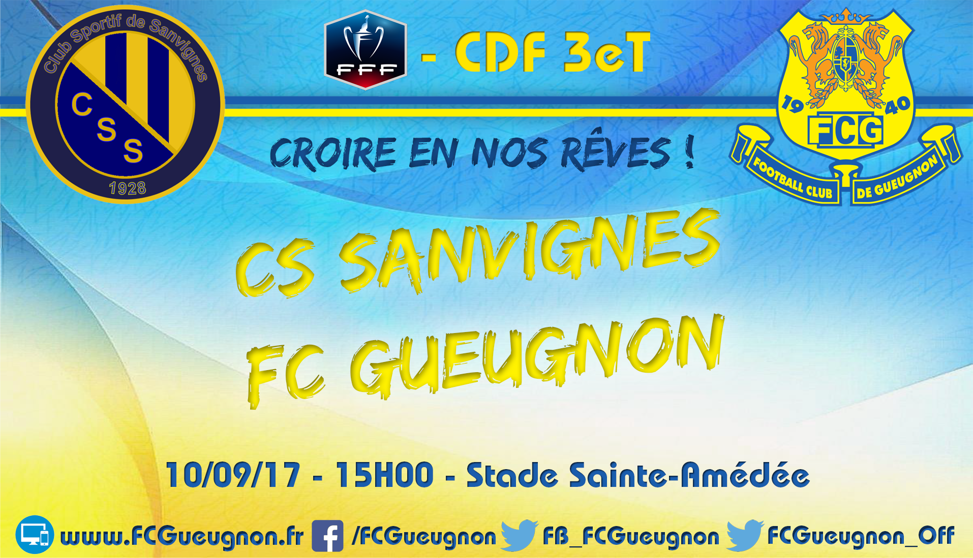Le FC GUEUGNON va débuter sa campagne de coupe de France à Sanvignes avec l’ambition réussir un meilleur parcours que les années précédentes. Mais on le sait, la coupe est magique et la hiérarchie n’est pas toujours respectée… Ce match permettra de donner du temps de jeu aux joueurs rentrants et aussi de préparer la suite du championnat dont le prochain match à Louhans. Contre la réserve de l’AJ Auxerre, le FCG a dû batailler et n’a rien lâché pour finalement égaliser dans le temps additionnel (1-1). Pourtant, Philippe CORREIA avait dû composer une défense « new look » en raison des blessures de plusieurs éléments. Mais avant de retrouver le championnat, place désormais à la Coupe de France. Comme nous le confiait le capitaine Fabrice REVUELTA : « Cela va être de toute façon un match difficile, c’est un match de coupe ! Dans ces matchs il n’y a que le résultat qui compte, il nous faudra marquer et rapidement ». Voilà une occasion de bien préparer la suite de la saison avec un match piège qu’il faudra aborder avec beaucoup de métier.