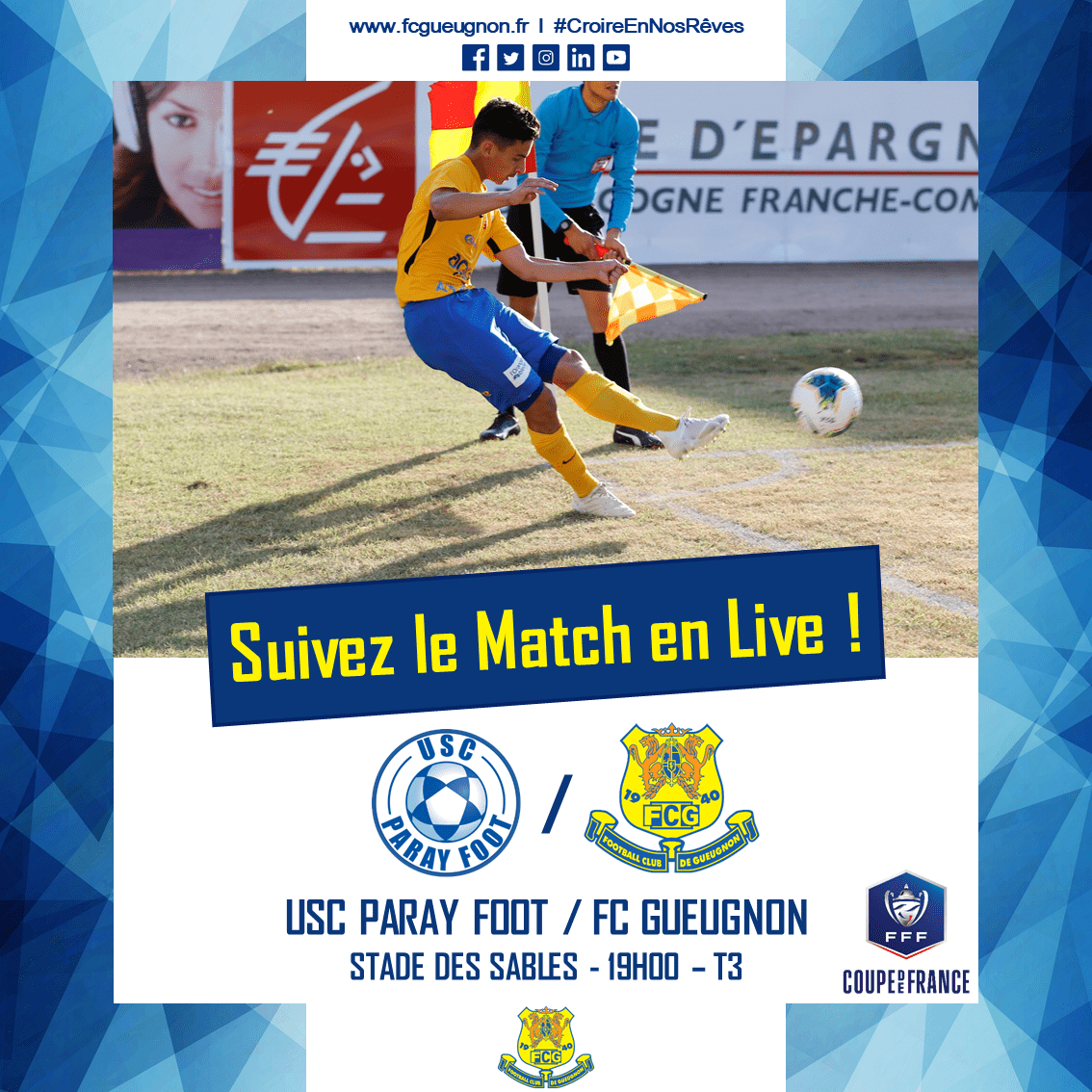 pour suivre le 3ème tour de la Coupe de France face à l’USC Paray Foot.