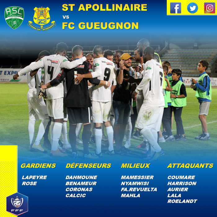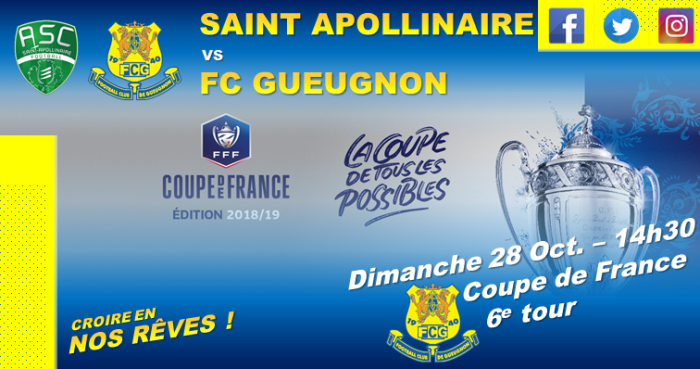 Retour à la coupe de France ce dimanche 28 octobre à 14h30 avec un déplacement à l’ASC SAINT-APOLLINAIRE (R1) lors du 6ème et dernier tour régional.