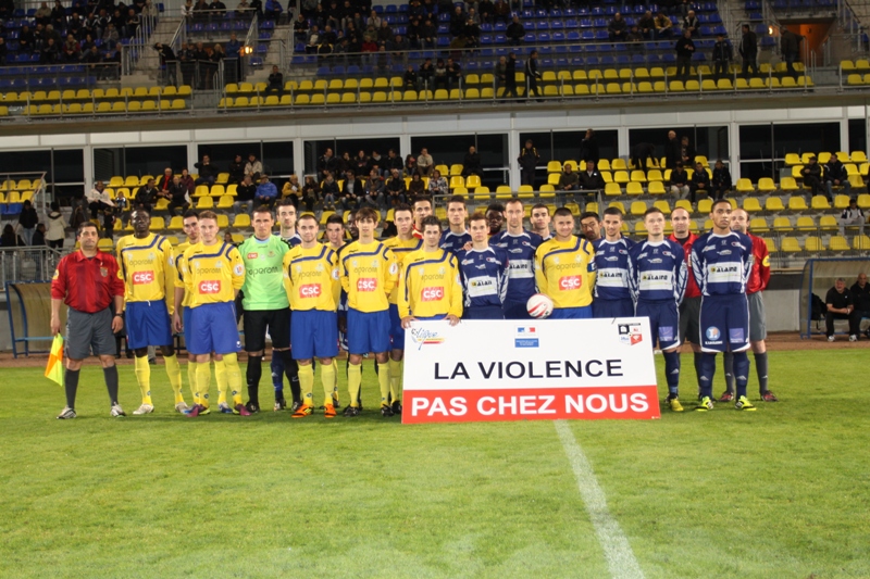 Face à une équipe mâconnaise qui a refusé le jeu la plupart du temps les joueurs gueugnonnais un peu timorés peut être aussi paralysés par l'enjeu et l'objectif la victoire à tout prix, ont paru balbutier leur jeu cette première mi temps…les passes n'arrivaient pas le jeu était brouillon..On notera le tir à côté à la 10emn de Franck REVUELTA bien placé sur un bon service de Maxime LAFAY …. Mais l'organisation défensive mâconnaise et leur jeu qui consistait à "pourrir" le match soit pour gagner du temps soit pour faire déjouer les gueugnonnais ou encore pour casser le jeu semblait très au point ..