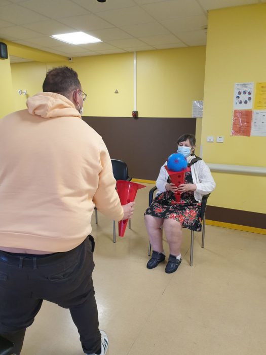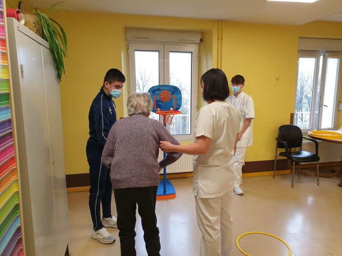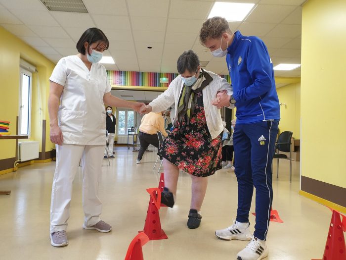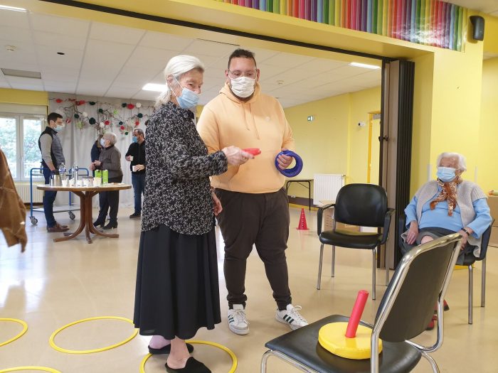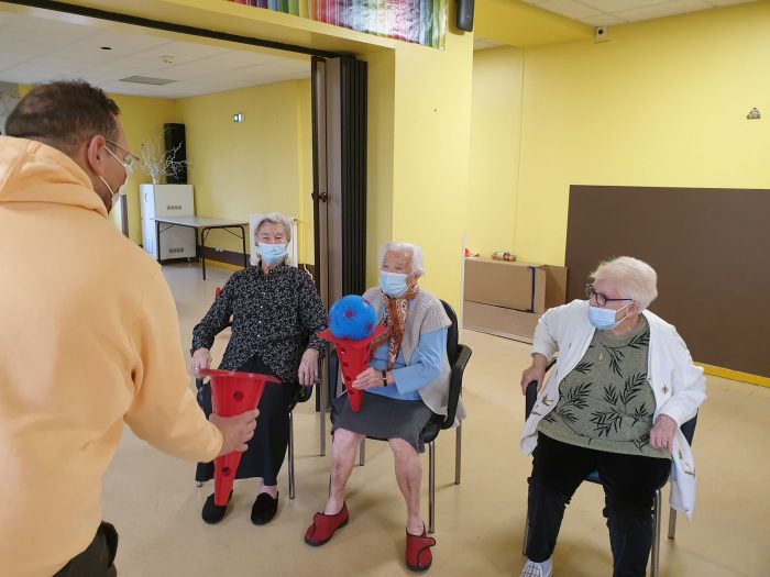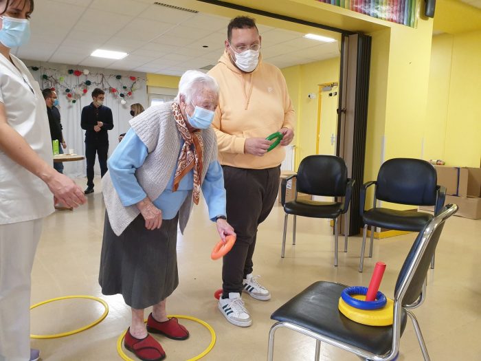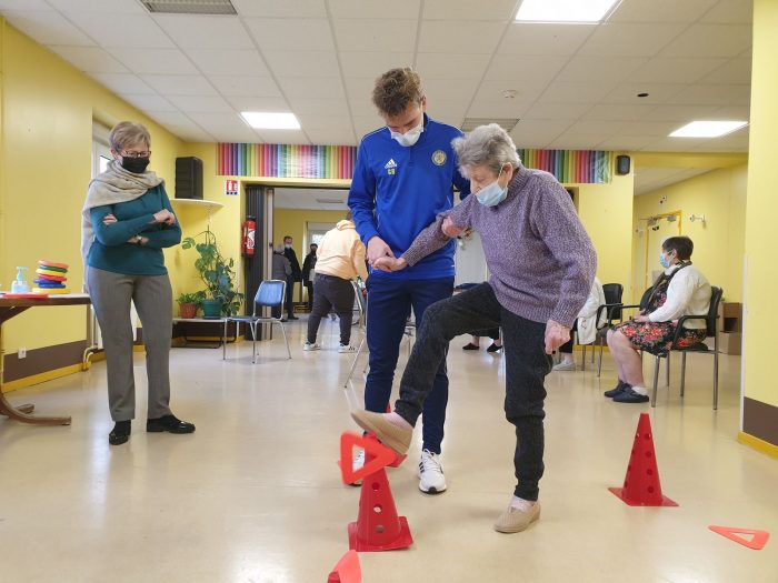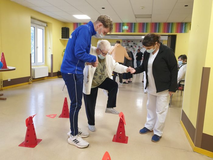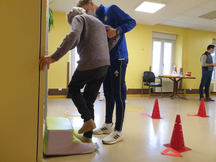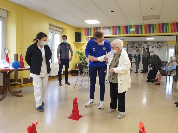 Après la remise officielle des équipements où chacun des participants et partenaires du projet ont démontré l’importance des actions mises en place, les éducateurs du FC Gueugnon sont intervenus auprès de cinq résidentes. Au programme de la séance : un échauffement tout en douceur puis des exercices d’adresse et d’équilibre. L’objectif est de lutter contre la perte d’autonomie tout en gardant la bonne humeur et en renforçant les liens intergénérationnels.