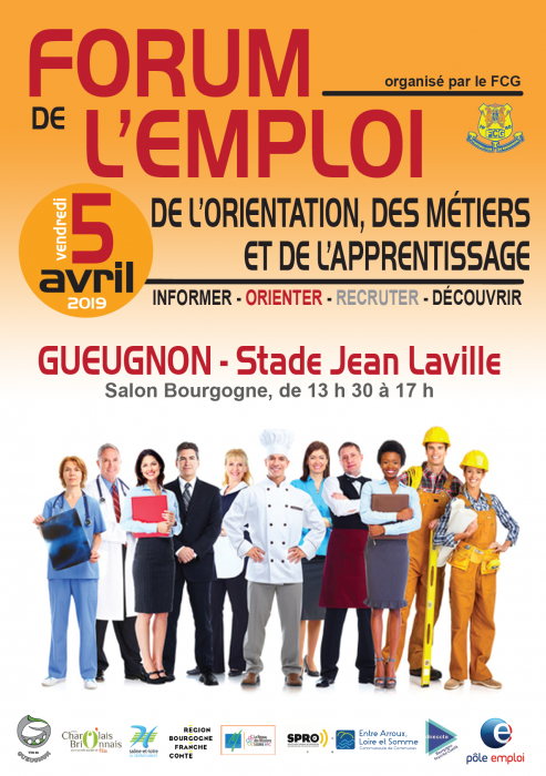 Le Football Club de Gueugnon, la Mission Locale, la Ville de Gueugnon, le Pays Charolais Brionnais et le Pôle Emploi organisent la 4ème édition du Forum de l’Emploi, de l’Orientation, des Métiers et de l’Apprentissage.