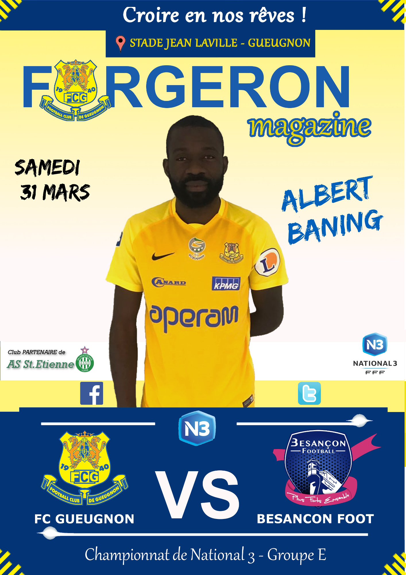Retrouvez le Forgeron Mag’ #12 et notamment l’interview d’Albert BANING, diffusé à l’occasion de la 20ème Journée en retard du championnat National 3 où les jaunes et bleus recevaient le Besançon Football, en vous rendant sur >> ce lien (PDF)