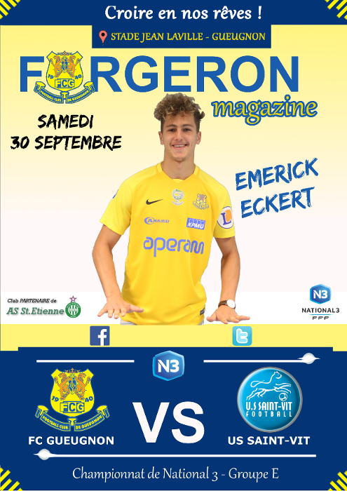 Retrouvez l’interview de Emerick ECKERT réalisée avant la 5ème journée de National 3 contre l’US Saint Vit et publiée dans le Forgeron Mag de ce samedi 30/09