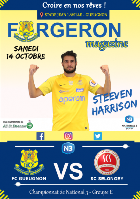 Retrouvez le Forgeron Mag’ #3 et notamment l’interview de Steeven HARRISON, diffusé à l’occasion de la 7e journée de National 3 où les jaunes et bleus recevaient le SC Selongey, en vous rendant sur >> ce lien (PDF)