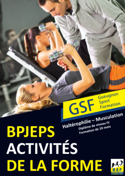 A partir de la rentrée 2018/2019,  Gueugnon Sport Formation propose une formation préparant au BPJEPS Activités de la Forme Option A (Cours Collectifs) et Option B (Haltérophilie/Musculation). A ce titre, vous pouvez vous former en apprentissage ou en formation professionnelle continue, aux Métiers de la Forme.