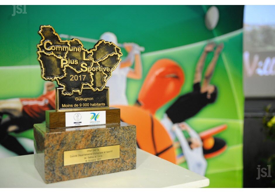 Avec 5 000 licenciés, des équipements de qualité et une politique volontariste en matière de sport, la ville de Gueugnon s’est vu décerner le trophée de la ville la plus sportive par le Comité Départemental Olympique et Sportif de Saône et Loire pour la catégorie ville de moins de 9000 habitants.