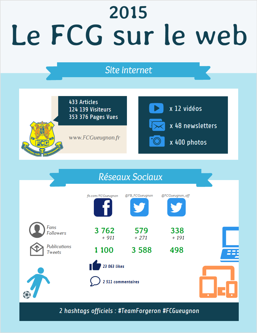 Retrouvez les chiffres sportifs et web de l’année civile 2015 grâce aux 2 infographies réalisées par notre page Facebook : Facebook.com/FCGueugnon