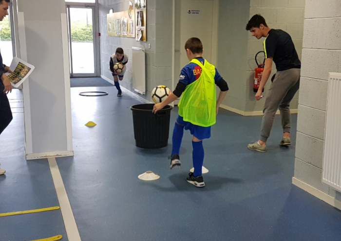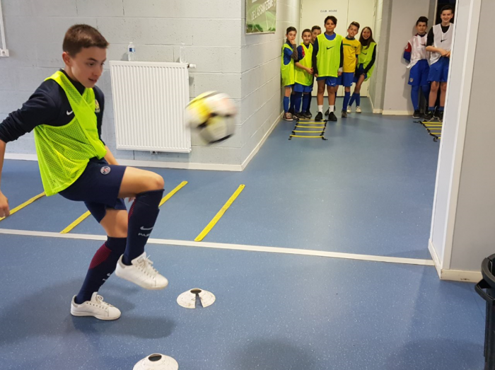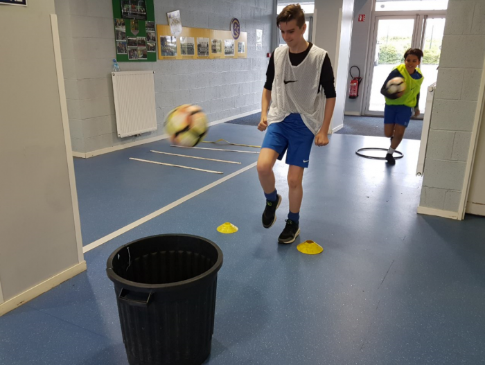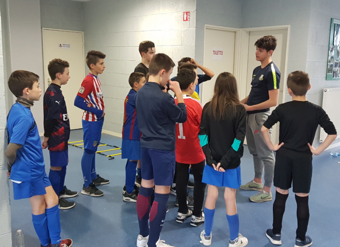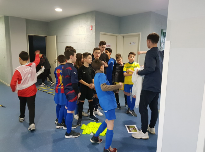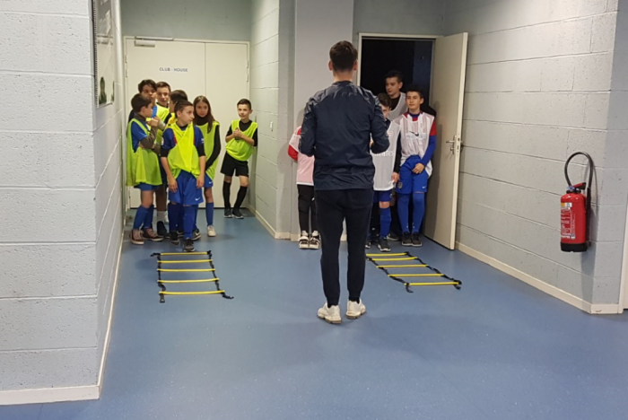 Cette action a été animée par Romain CATENACCI et Hugo BORGNA : « A la demande d’un dirigeant du club, nous voulions que tous les jeunes soient sensibilisés sur le fait de dire «bonjour» à toutes les personnes qu’ils croisent au sein du club. Nous avons donc créé un parcours de coordination, de vitesse et de technique. Au départ, nous présentions une photo d’une star ou d’une nation participante à la Coupe du Monde de Football. Deux équipes étaient opposées et le premier joueur qui terminait le parcours correctement devait choisir le «bonjour» dans la langue correspondante à la nation présentée au départ du parcours. »