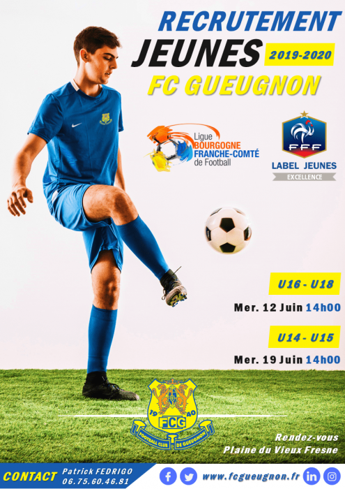 N’hésite pas à te présenter aux journées de recrutement organisées par le Football Club de Gueugnon ! Ces deux journées sont ouvertes à tous les jeunes qui évolueront la saison prochaine dans les catégories U14 à U18 !