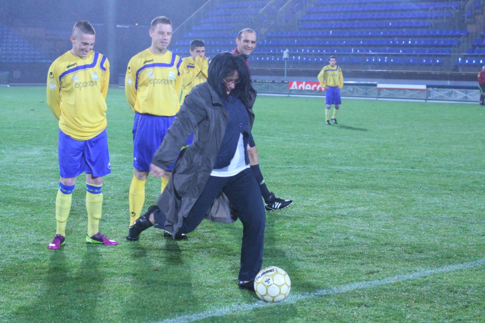Gérante de la boutique Krys, au 15 de la rue Jean Jaurès à Gueugnon, Mme Dominique Guigue a non seulement offert le ballon du match de la belle victoire 3-0 du FCG contre le FC SENS, mais nous a gratifié d'un geste très pur et élégant à la manière d'un buteur chevronné, qui met tout son cœur dans la frappe de balle !!