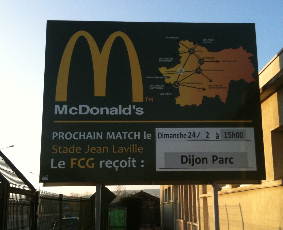 Par la même occasion, le panneau de notre partenaire Mac'Do, cher à Pascal Rames, qui nous annonce les affiches à domicile va reprendre du service ..