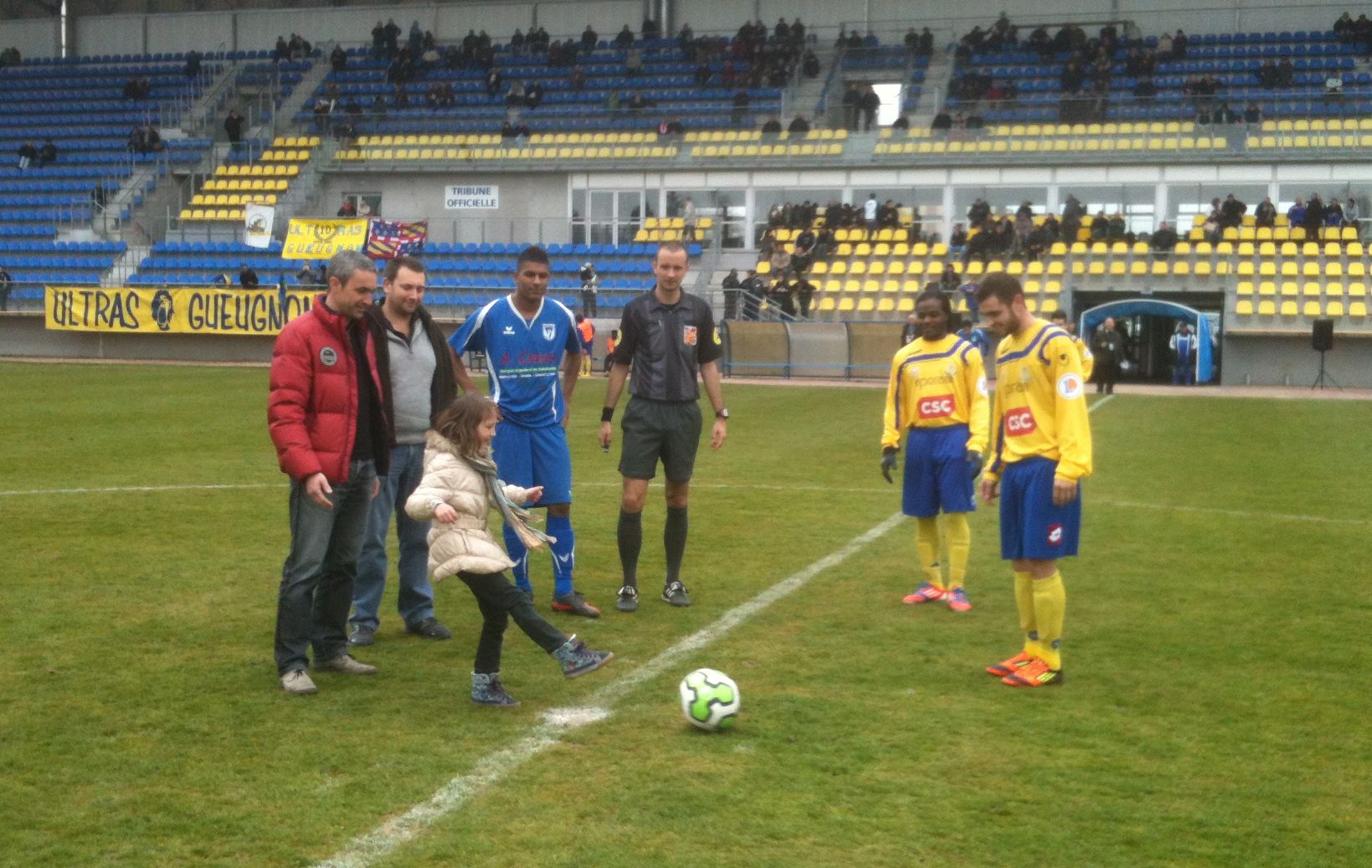 C'est la petite Valentine, fille de Samuel, qui a frappé le ballon sous les yeux des joueurs des 2 équipes ainsi que de l'arbitre central, Olivier Michon.